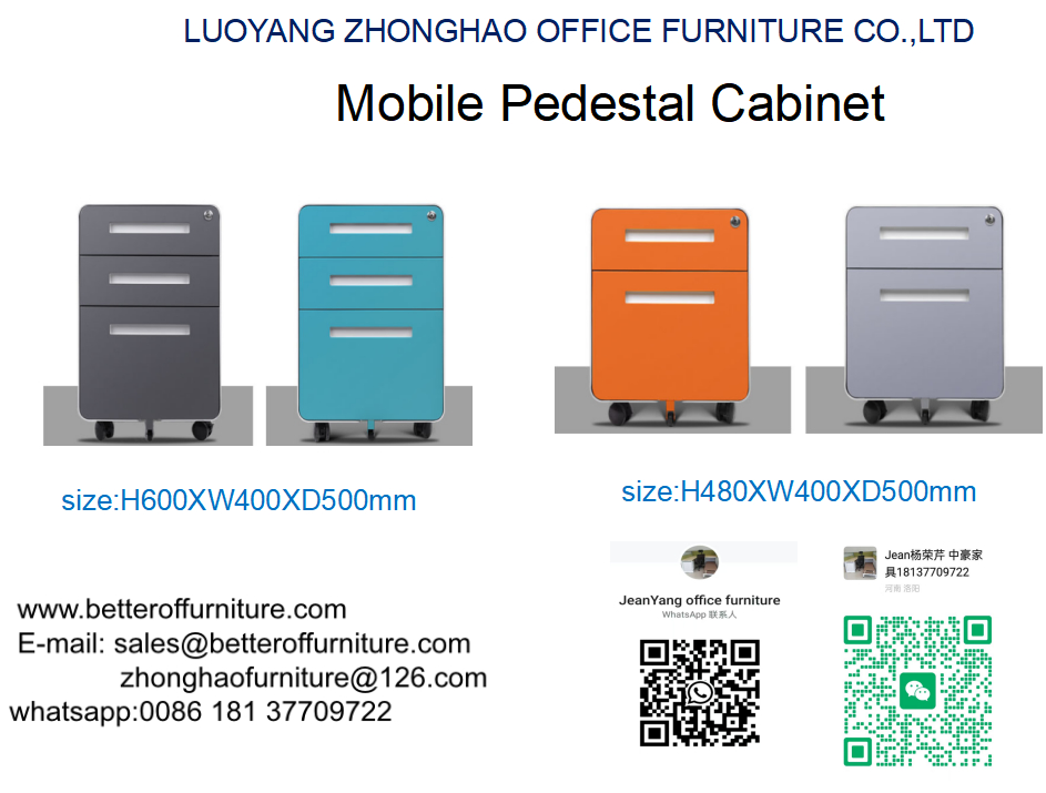 Do you need to collect yourself goods and document in the cabinet? Let use our pedestal cabinet that can slove your problems. Two drawers and 1 box can collect more private goods. Roundess core design, very fashion ,Meanwhile keep your workspce organized, secure,and personality.